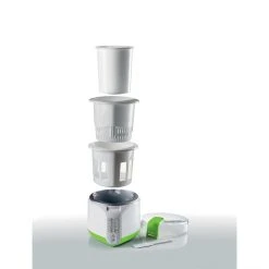 Yaourtiere pratique et compacte, livrée avec un livre de recettes pour de délicieuses préparations maison. 100 % sans BPA pour une alimentation naturelle et saine. 14 pots de 150 ml chacun, 13 W, enrouleur de câble, pieds antidérapants, Voyant LED, couvercle transparent avec poignée, graduation mémo pratique. Blanc-Gris