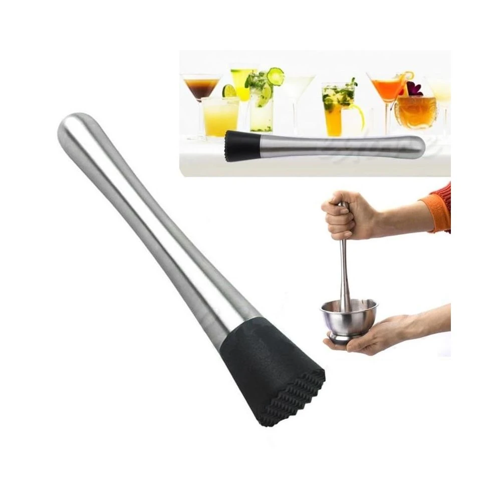 Type: Outils de bar : 1. Matériau de la poignée: acier inoxydable + plastique 2. Taille: 3,3×3,3×20,5 cm3. Poids: 95 grammes 4. Traitement de surface: ponçage 5. Durable et facile à nettoyer 6. Convient aux bars, restaurants, pubs, hôtels et maisons7. Habituellement utilisé pour écraser divers accessoires, mélanger des fruits frais dans des cocktails ou écraser d’autres aliments